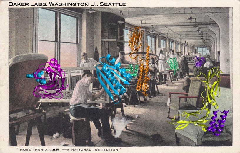 Quand ce problème est abordé via des outils de modélisation informatique, on parle de Computational Protein Design (CPD). Et ce sont les réussites de l’équipe Baker dans le domaine qui lui ont valu une moitié de Nobel le mois dernier. Leur premier succès en la matière date de 2003, avec la conception de TOP7, une petite protéine artificielle (dite aussi de novo) d’une centaine de résidus, dont le repliement ne resemble à aucune autre. Cette approche marque une rupture avec les recherches développées jusque là, du côté de l’évolution dirigée ou de l’ingénierie protéique, où l’on partait d’une protéine existante dont on modifiait ou modulait l’activité avec des changements ciblés dans la séquence. Dans le CPD, on repart de zéro et l’on reconstruit une séquence complète. Comme le dit Baker lui même Si vous voulez bâtir un avion, vous n’allez pas pas modifier un oiseau. Et il lui a d’abord fallu comprendre les grands principes fondamentaux qui régissent le repliement des protéines avant de pouvoir générer de nouvelles séquence inédites.